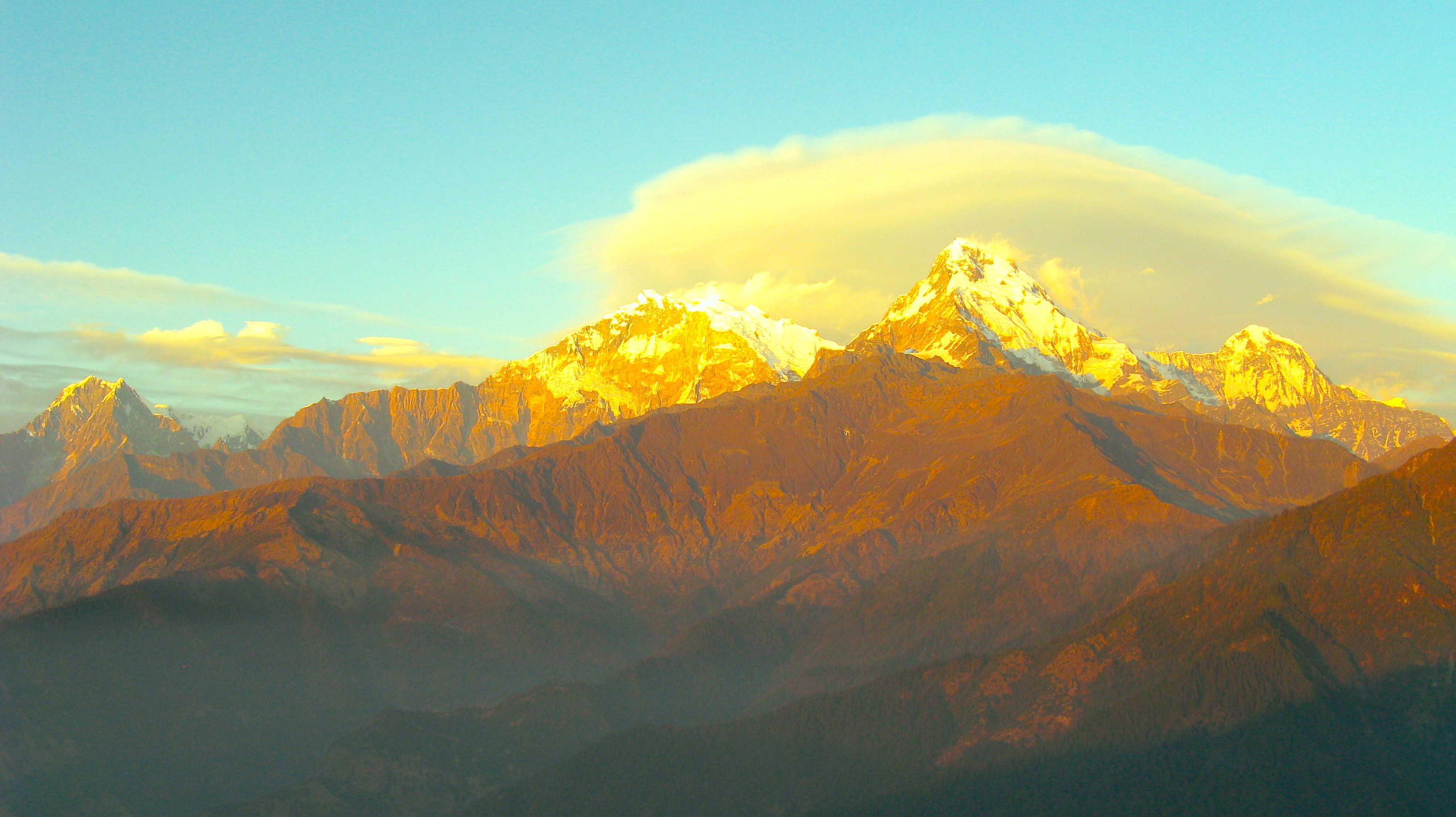 Poon Hill is the most popular view point. Poon Hill has great panoramic sunrise views of Annapurna South (7219m), Hiunchuli (6441m), Annapurna I & Barashikher (8091m), Dhawalagiri (8167m), Nilgiri (6420m), and more than 15 other mountain views of central Himalayan region of Nepal. It also has an incredible valley view of Kali Gandaki & Mustang as well. It is a great place for photography.